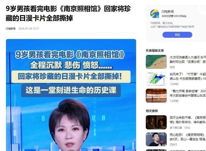 9岁男孩看完电影《南京影相馆》回家将难得的日漫卡片全部撕掉.闪电新闻.2025-07-28