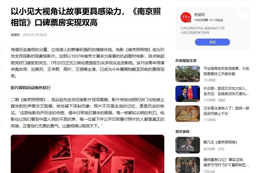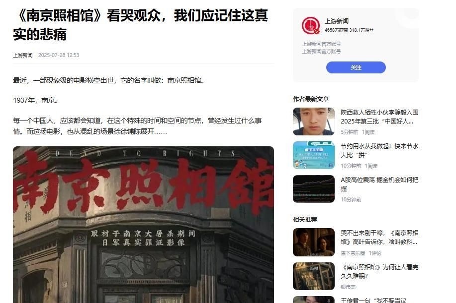 《南京影相馆》看哭不雅众,咱们应记取这着实的哀吊.上游新闻.2025-07-28