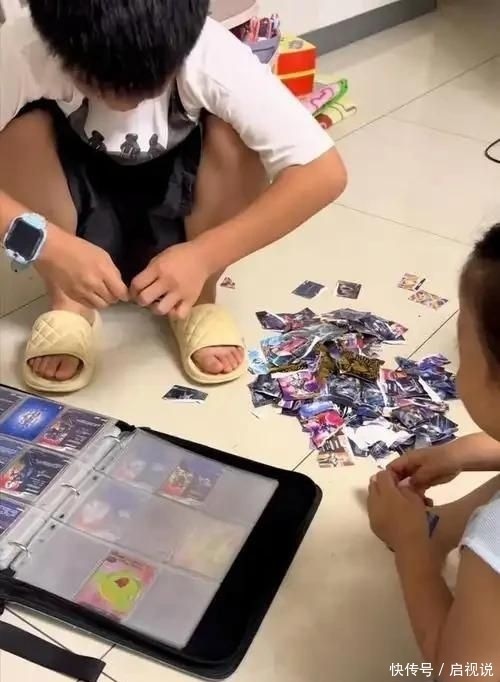 回家后他冲进房间,拖出难得的奥特曼卡册。