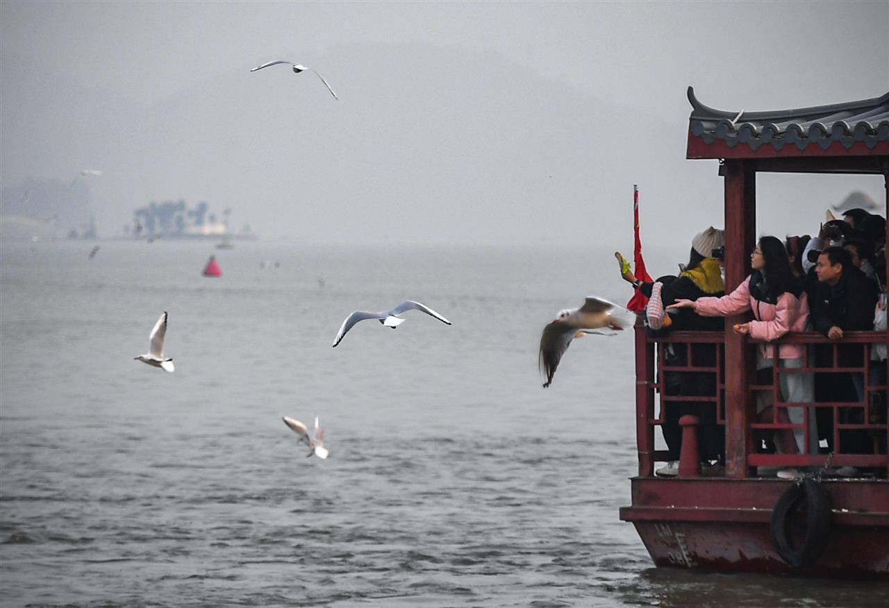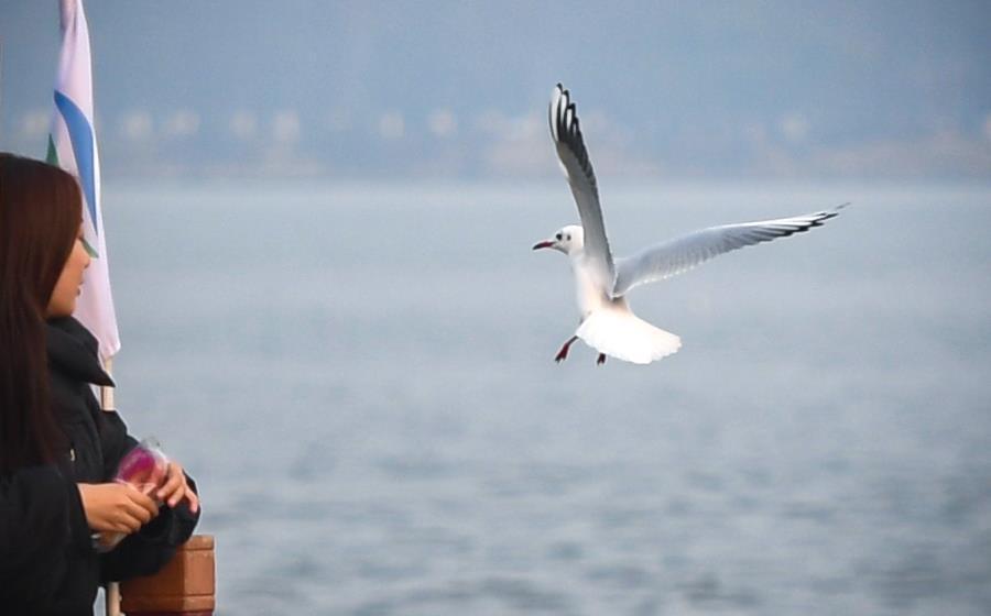 1月17日,武汉东湖迎来了一群相当的“越冬客”,来自西伯利亚的红嘴鸥。在东湖绿谈楚风园游艇船埠,成群的皑皑的红嘴鸥翩跹起舞,与搭客近距离互动,成为东湖冬日里最动东谈主的征象。