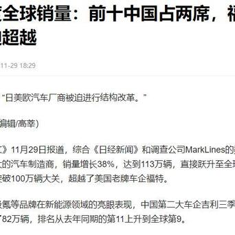 前几天,日媒惊叹,本年第三季度,中国汽车制造商比亚迪销量冲破100万辆,额外了好意思国老牌车企福特,排在全球第六位。日媒还瞻望,四季度比亚迪有望成为全球第五。
