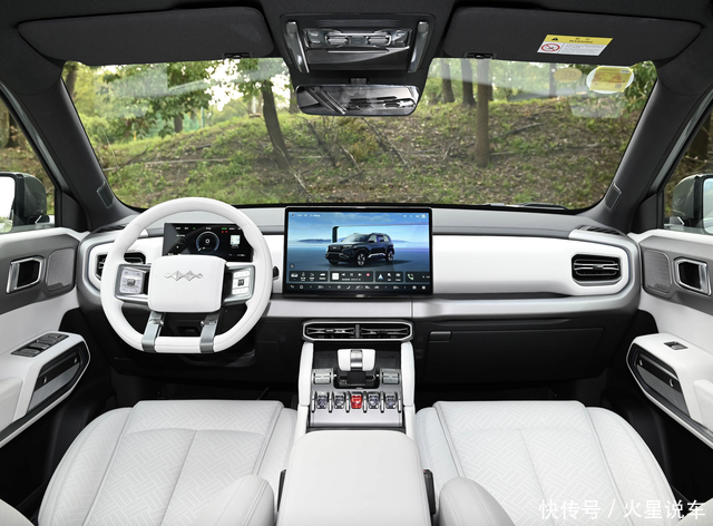 在车内,钛3选拔了T型的中控台盘算,搭载了8.8英寸的液晶姿色和15.6英寸的悬浮式中控屏,四幅式的标的盘显得相配独到,方程豹记号性的“战车档把+水晶按键”也莫得缺失,科幻色调相配热烈。在用料方面,钛3也瑕瑜常舍得下血本,手能摸到的场所的中控台及门板基本齐是软性材质。