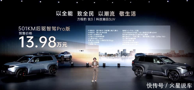3月31日,比亚迪方程豹旗下全新车型钛3真贵开启预售,新车共推出5款建树,501KM后驱智驾Pro版13.98万元,501KM后驱智驾Max版14.98万元,501KM四驱智驾Max版16.38万元,501KM四驱智驾Ultra版17.38万元,501KM四驱无东说念主机版20.38万元。这款新车的举座进展怎样呢,咱们沿途来看一下。