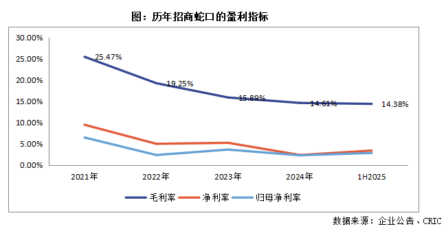 上半年招商蛇口营业收入515亿元,与客岁同期苟简握平。毛利润为74亿元,同比上升20%。毛利率14.4%,同比上升2.4个百分点,较2024年全年略有下跌;其中,开辟业务毛利率为16.27%,同比增多3.38个百分点。期内,三费用度率为6.13%(除以营收限制),同比裁汰0.13个百分点。投资收益同比下跌48%至5.8亿,主如若期内权利法核算证据的投资收益大幅下跌,从同期10.9亿下跌至0.7亿。净利润17.4亿,同比下跌6%;净利率为3.38%,同比下跌0.2个百分点。