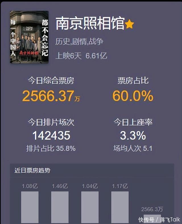 大家当今齐在商讨《南京影相馆》为啥能这样火。这部片子讲的是南京那会儿的事儿,看电影的东说念主说相等戳心。适度今天上昼十点多,这部电影今天光上昼就拿了两千三百万。有不雅众说看完就思起历史课上学的,可能这即是大家自得用钱进影院的原因吧。