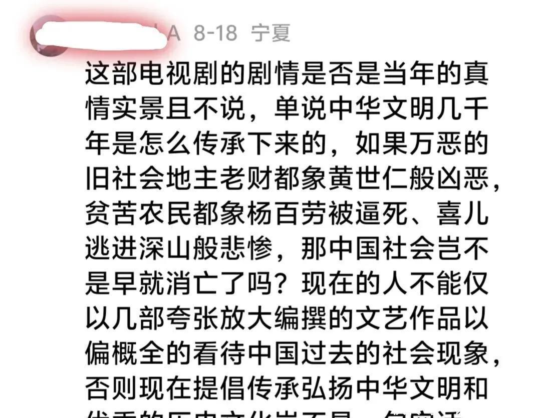剧中的宁老财和费左氏,一个被塑酿成连狗屎齐不放过,还称其因检朴能致富;另一个是节沐日送米、农忙时发种子的 大善东说念主”。听上去尤其正能量,但仔细想想,奈何会有这样好的田主呢?相背,这些缺乏农民和田户却被样貌成散漫、绝不消处的东说念主。我看到弹幕上很多不雅众纷繁示意招供,说旧社会莫得那么恶运,新社会也不是很好。剧情与骨子历史透澈不一致。