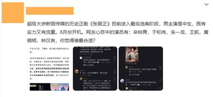 另外,网传辛柏青与李沁也将加盟《风禾尽起张居正》这部新剧。