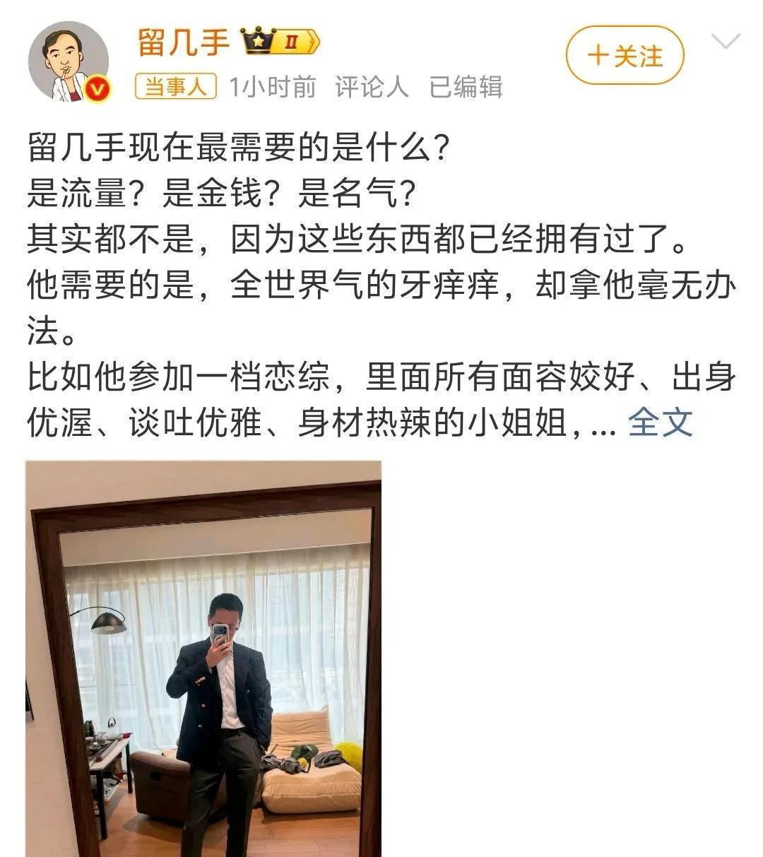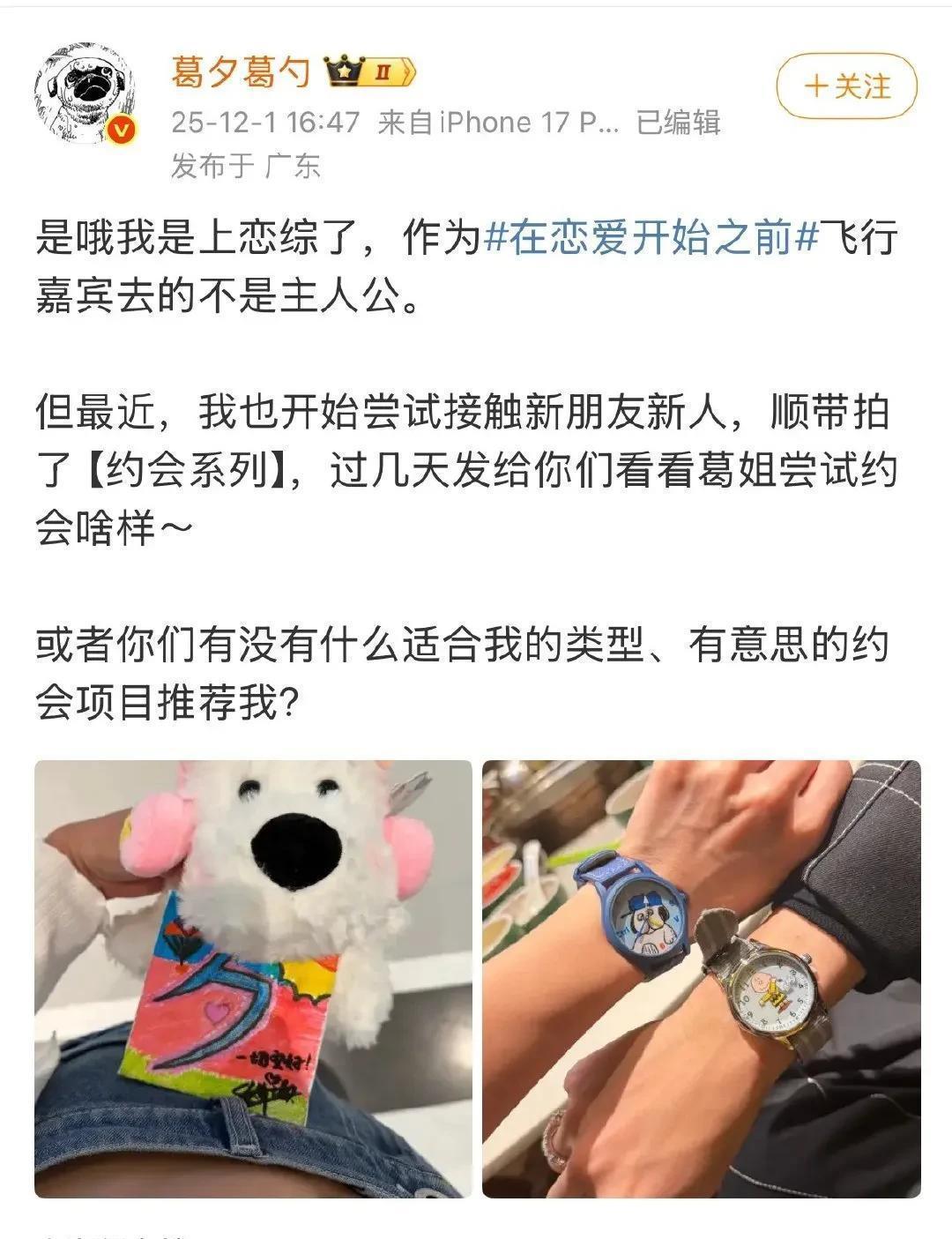 就在葛夕更新几分钟后留几手的一波操作亦然把我网友看懵了,她径直发微博的原理能够他也想上恋爱综艺?