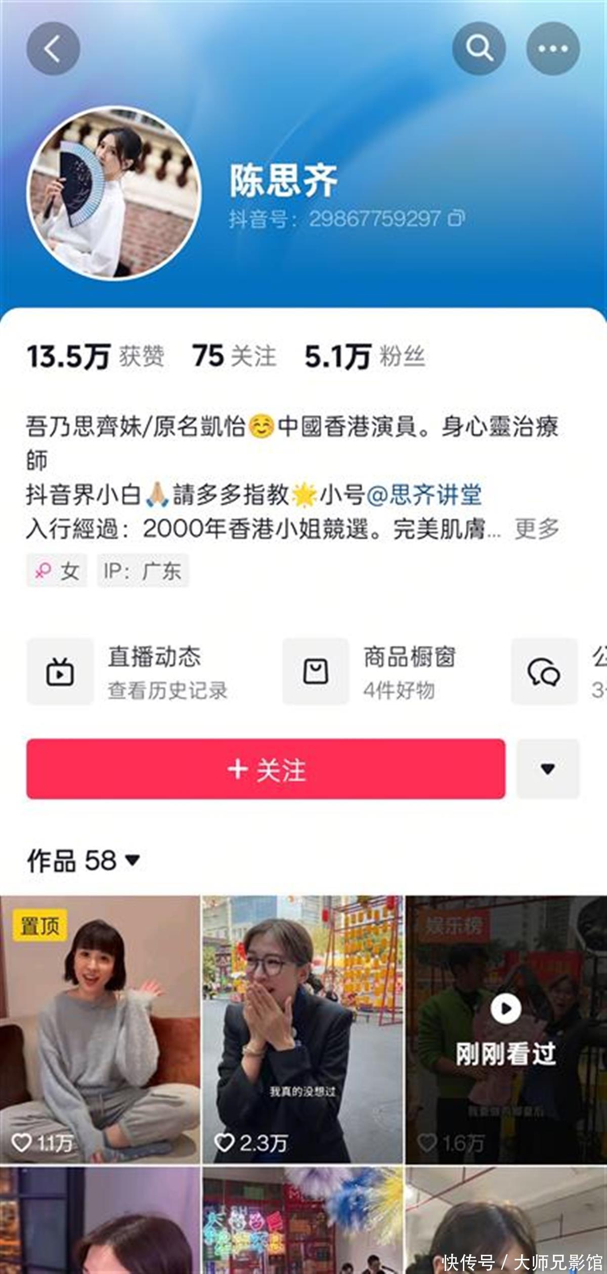 陈念念王人个东谈主账号主页截图