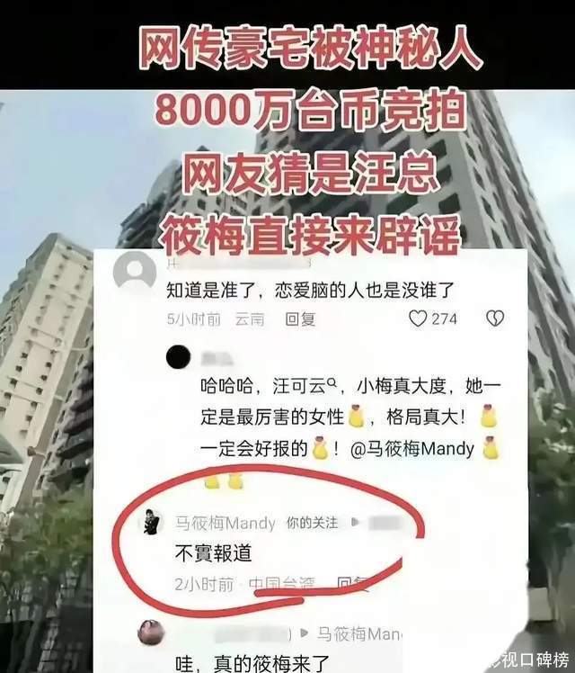 对于,汪小菲拍下大S生前住的信义豪宅在收集上传得沸沸扬扬,马筱梅火速回话:装假报说念!