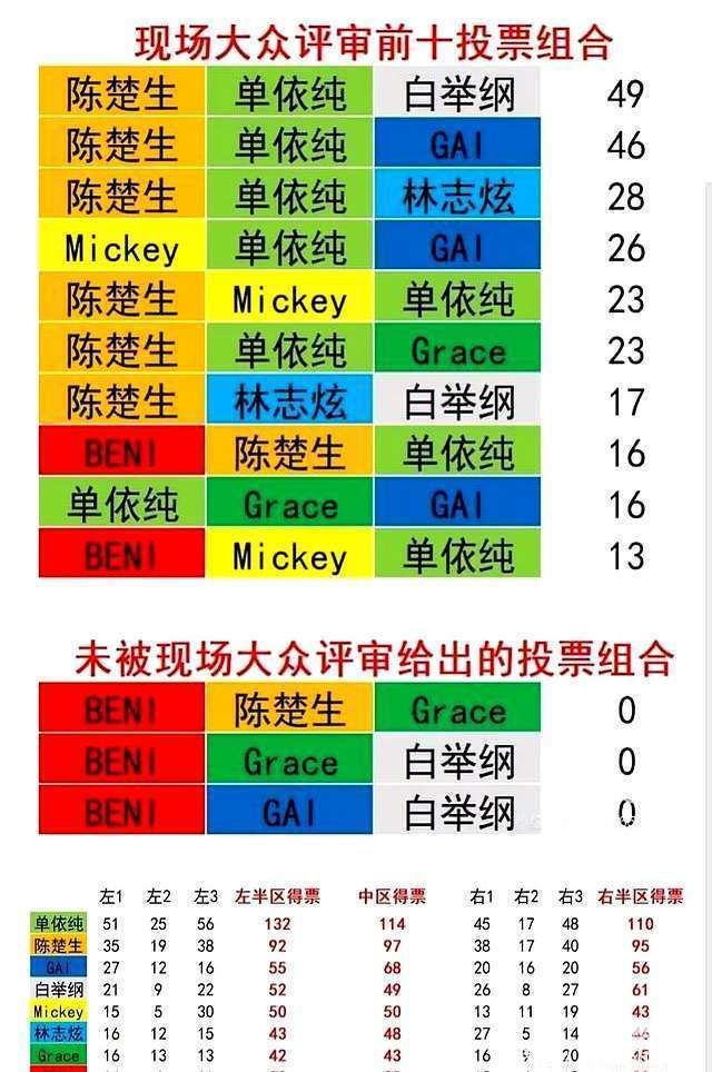况且,别传不少不雅众齐把宝压在了陈楚生和单依纯身上,一东说念主一票,胜利导致头部选手票数爆炸,后排选手差距却没那么大。单依纯这第一,拿的其实挺幽静的,致使不错果敢展望一下,惟有不翻车,她可能沿路普及到胜利捧走歌王奖杯。