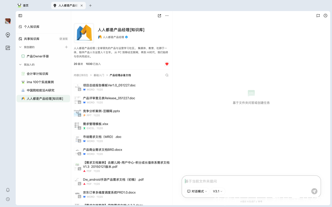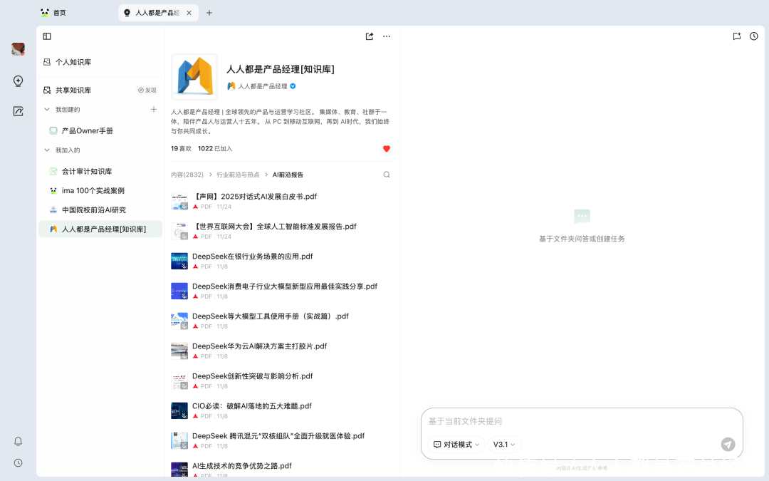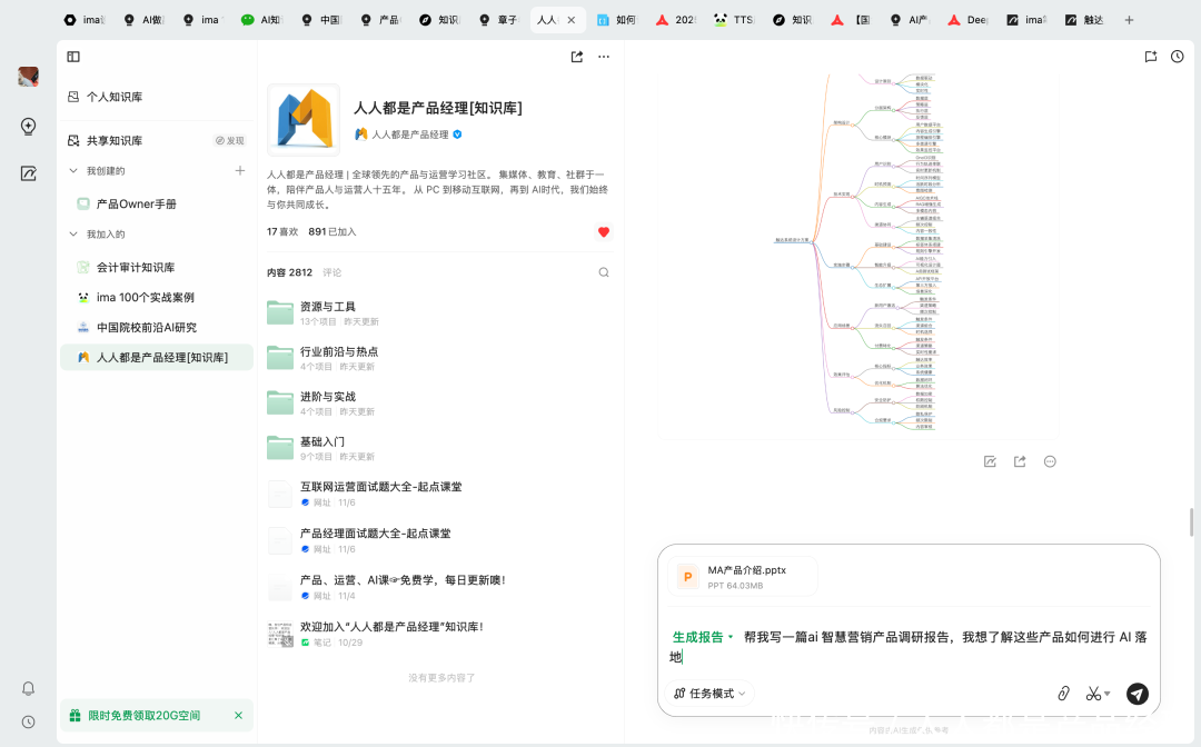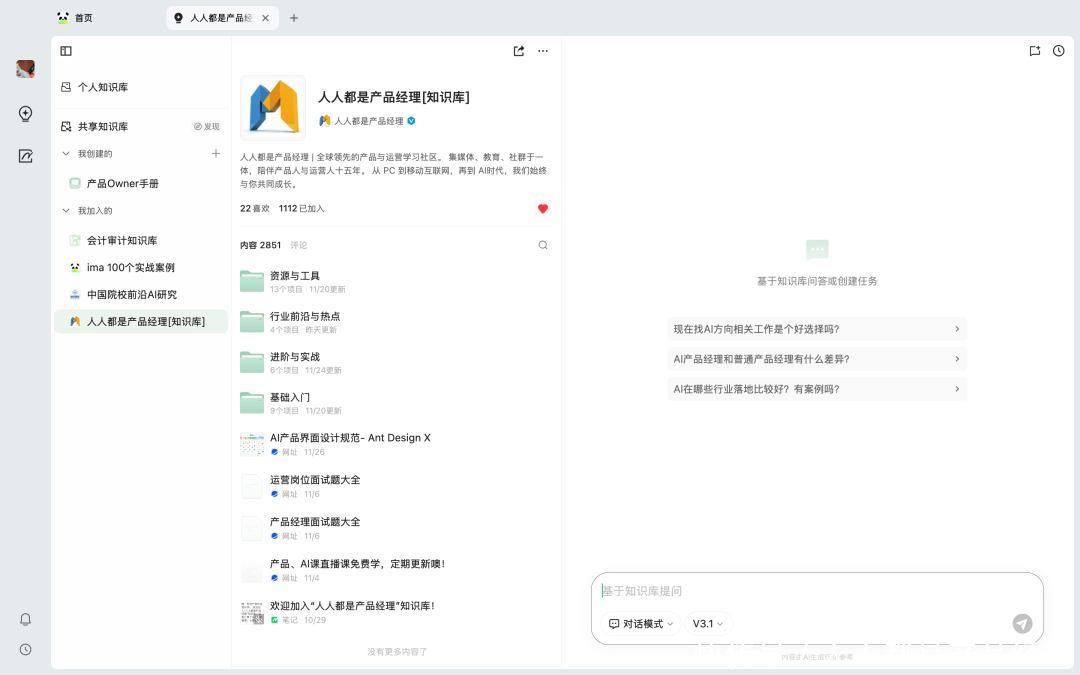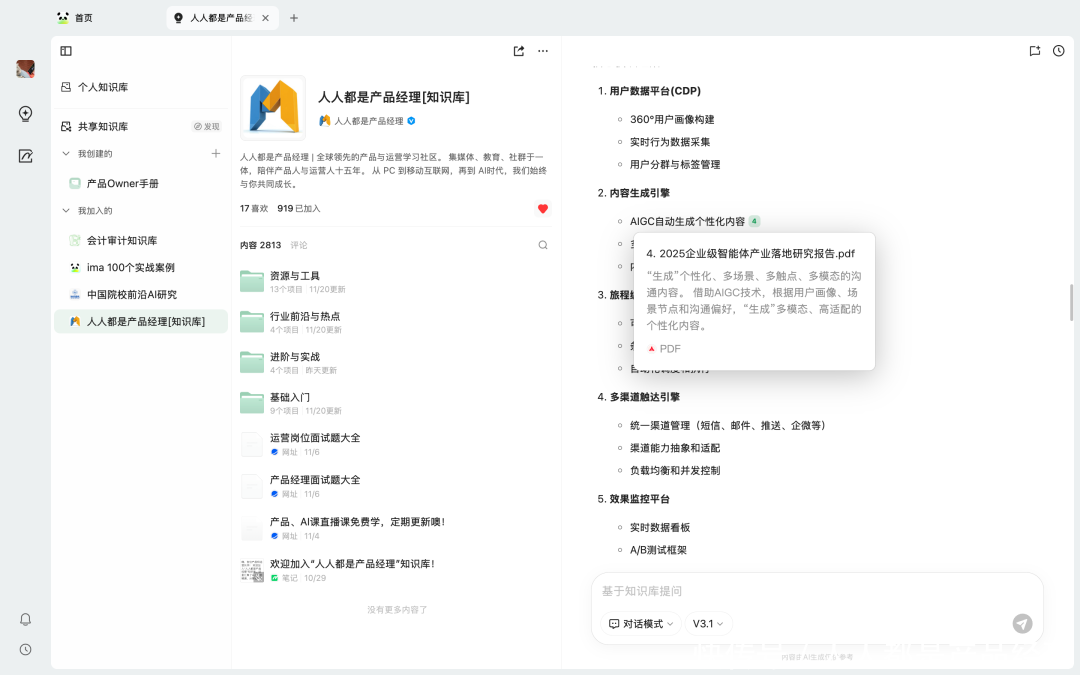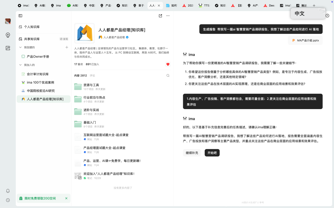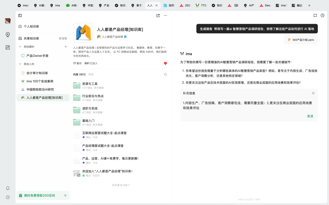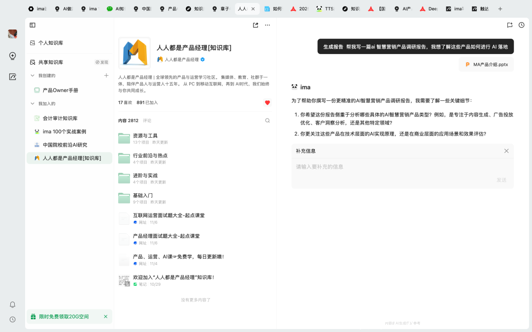 现时,通过「东谈主东谈主都是居品司理常识库」在 ima 常识库上的身手,这个过程会变得不太一样。