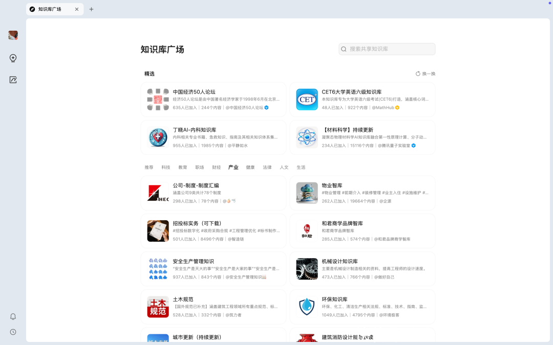 在测试这些典型场景的过程中,咱们还不测发现了 ima 常识库的另一个身手——常识库广场。