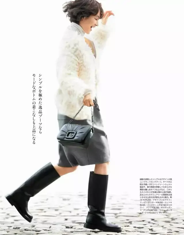关于平凡东说念主来说,遴荐花哨的衣服来穿搭的确很容易出错,还不如像富冈佳子一样,用一件最为基础的灰色 V 领真挚毛衣搭配玄色的半身裙,脚上穿的玄色的乐福鞋。这样的配色不挑东说念主不挑年齿,多了一种在意的气质感,同期又不失女东说念主味。