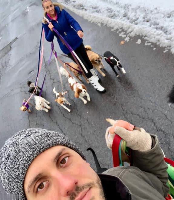 男人暗示,若是随机候狗狗的确太多,他也会叫上搭档一齐遛狗。