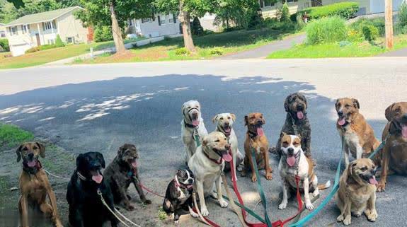 狗狗的本性就跟小一又友通常,男人每天带一群狗外出的画面,就跟幼儿园浑朴带小一又友远足通常。