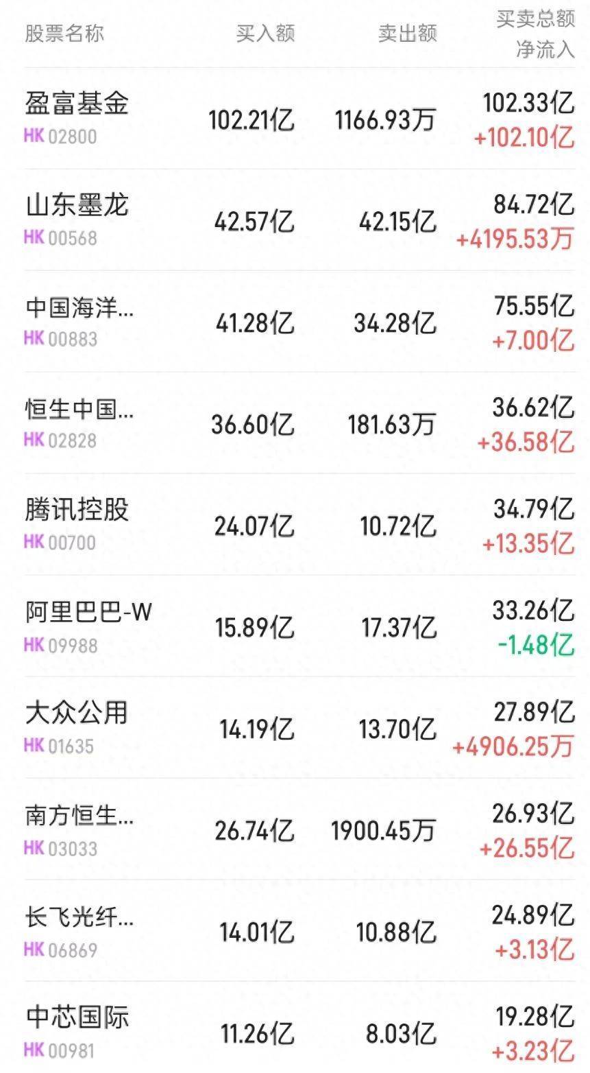 北水净买入最多的个股是盈富基金(02800)、恒生中国企业(02828)、南边恒生科技(03033)。北水净卖出最多的个股是中石化(00386)、长飞光纤光缆(06869)。