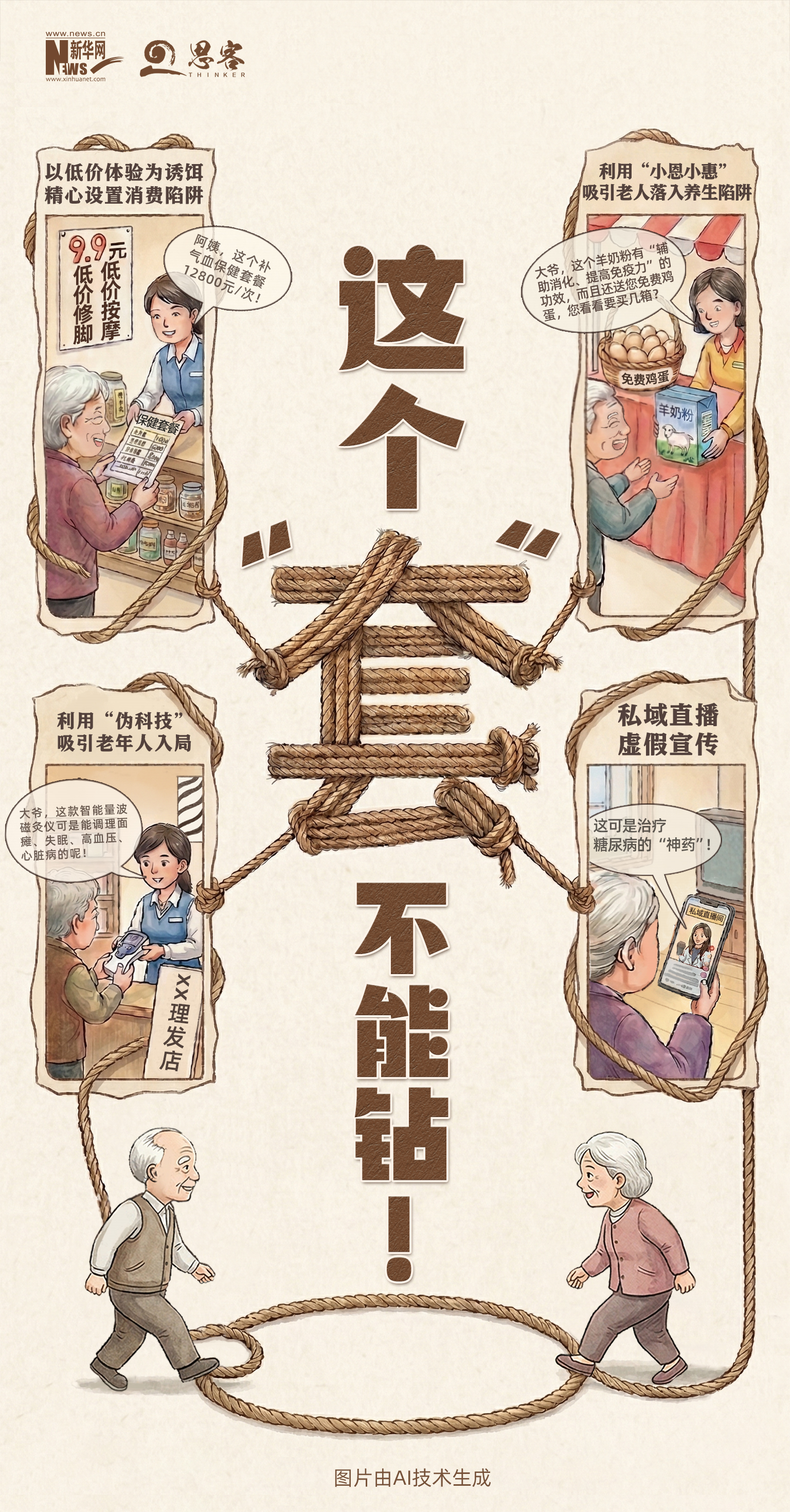 跟着老龄化经过日益加深足球投注app,老年群体的健康需求不休增长,养生保健“坑老”骗局数见不鲜、项目蜕变。从免费领鸡蛋、听课送红包的小恩小惠,到药到回春的保健神药、天价理疗套餐,一场场看似诱东说念主的养生礼包,背后满是悉数老年东说念主积聚的圈套。只消照章严打、露头就打,才略点破养生罗网的伪装,守住老年东说念主的“钱袋子”,不让养生成为把握老年东说念主的圈套。