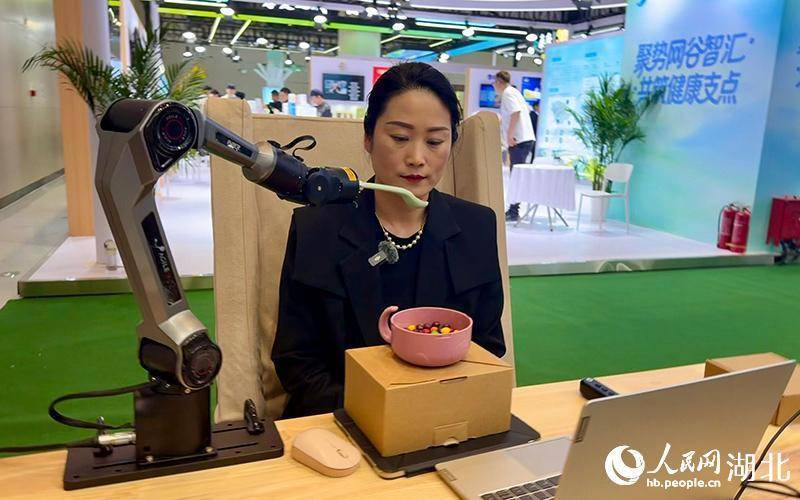 责任主谈主员正在演示喂饭机器东谈主。东谈主民网记者 张沛摄