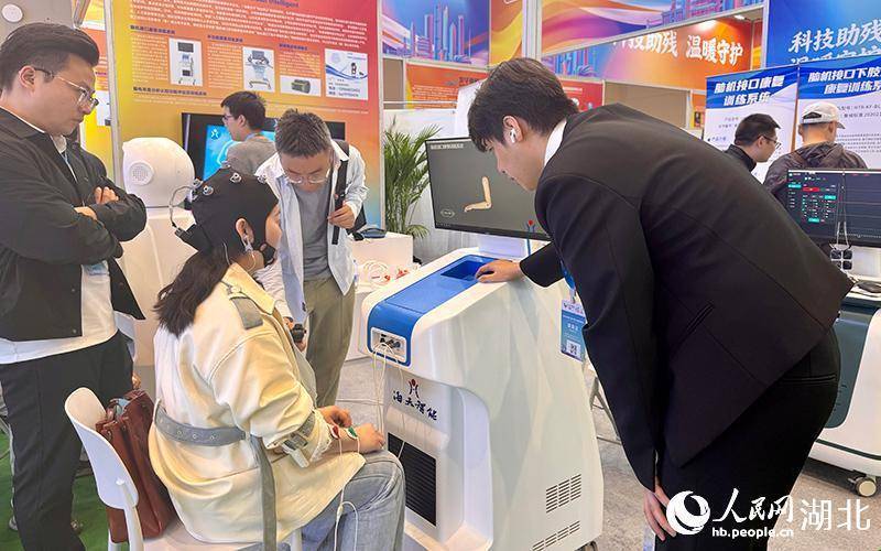 不雅众正在体验脑机接口康复考研系统。东谈主民网记者 张沛摄